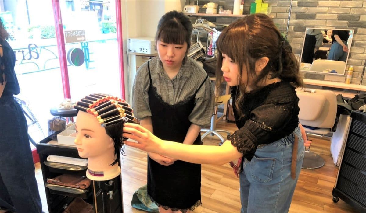 パーマに入る頃にはヘアカラーはマスターしていますので次のステップのブロー^、スタイリングの練習です。スタイリングでお客様の満足度が一気に上がりますのでしっかりとポイントを学びましょう!!
